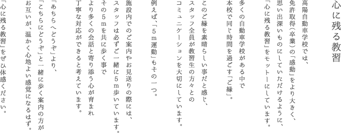 「心に残る教習」をモットーにしています。